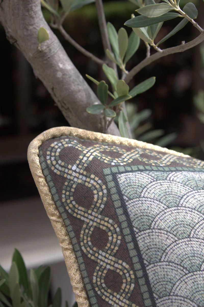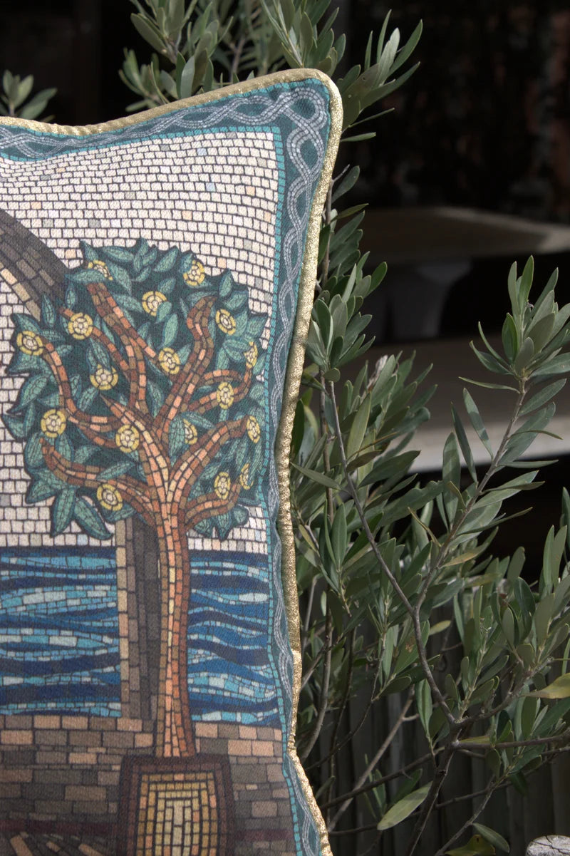Håndtegnet design i mosaikk, printed for å oppnå premium kvalitet. Puten er laget i tykk bomull (gabardin, 100%)